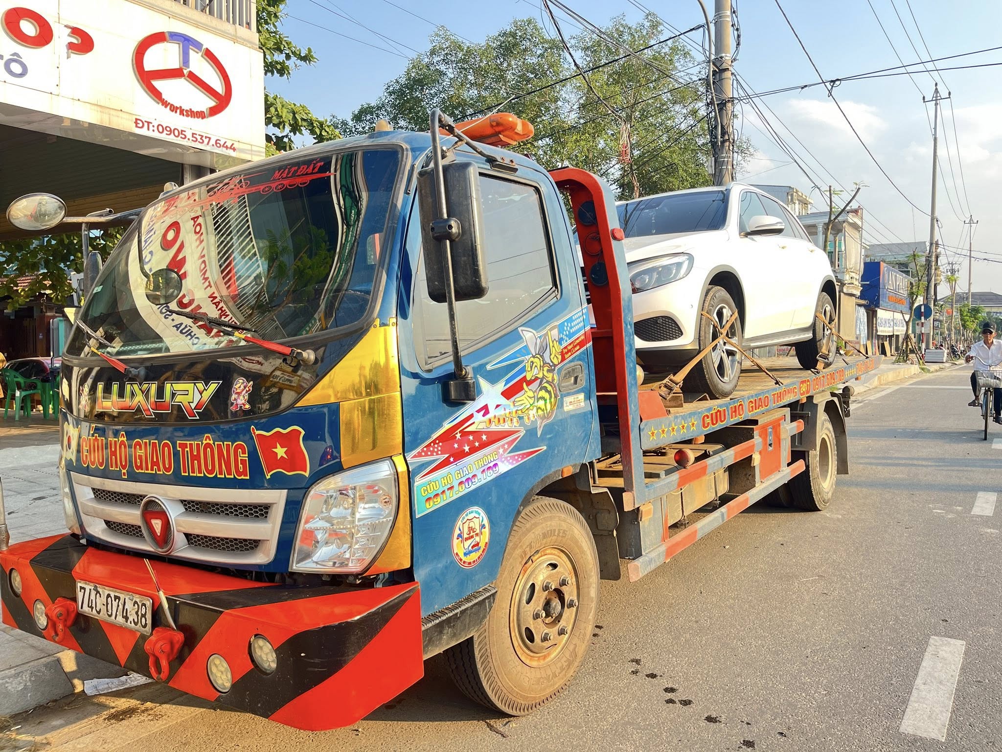 Mất phanh trên đèo, đường đất đá Quảng Trị là cực kỳ nguy hiểm. Đừng liều. Một chiếc xe cẩu sẽ nâng toàn bộ phương tiện lên thùng, đưa bạn về gara an toàn.